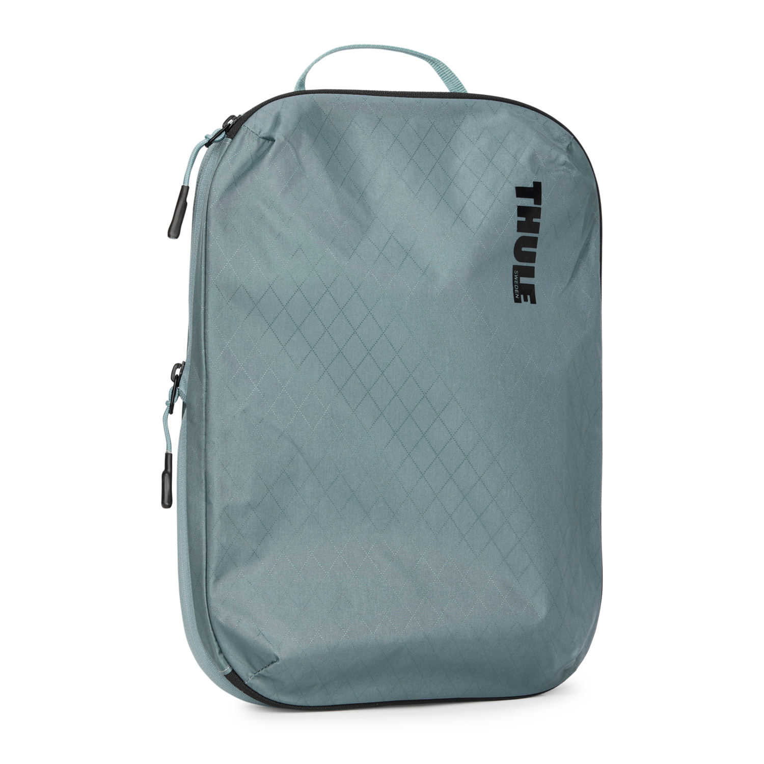 Pack smarter and stay organized with a semitransparent packing cube that expands and compresses to maximize packing space.