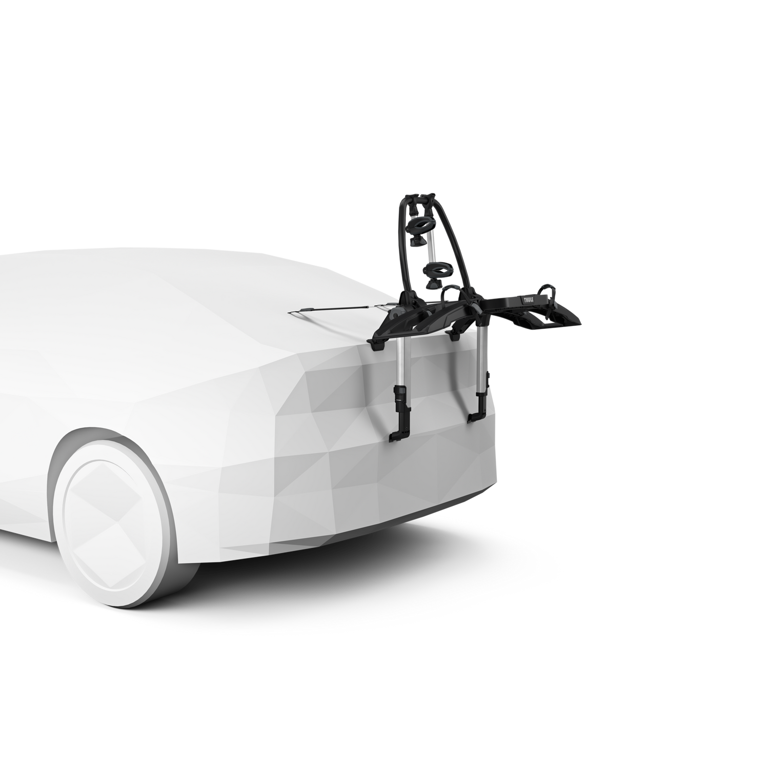 Premium trunk mount bike carrier with raised platform designed to keep the rear lights and license plate visible, and fits wide range of vehicles including those with a spoiler.