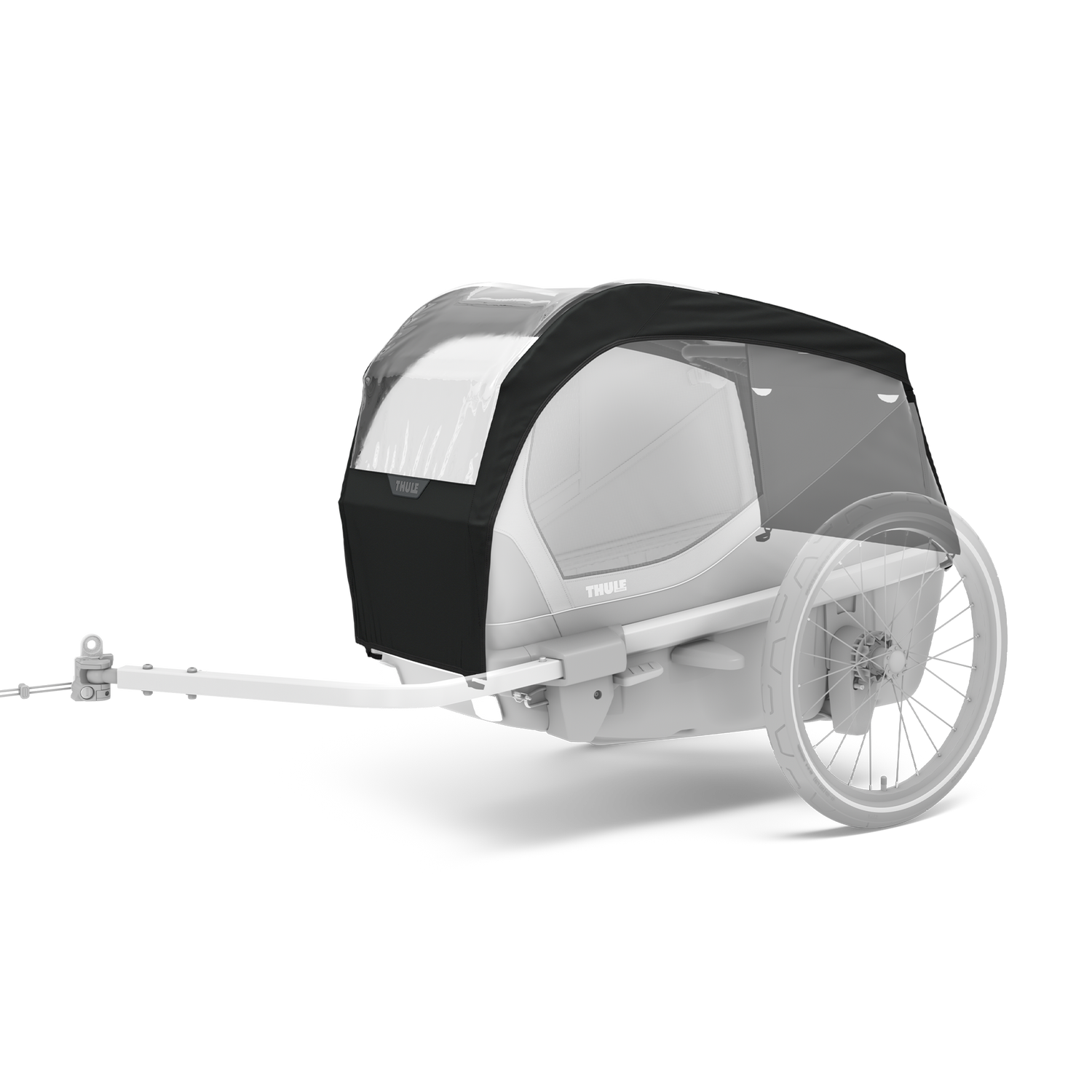 Cover your dog bike trailer with a rain cover - Rain cover with a clear plastic front window that is easily attached to your Thule Bexey dog bike trailer. It protects your dog on rainy days and offers additional warmth during the colder months.