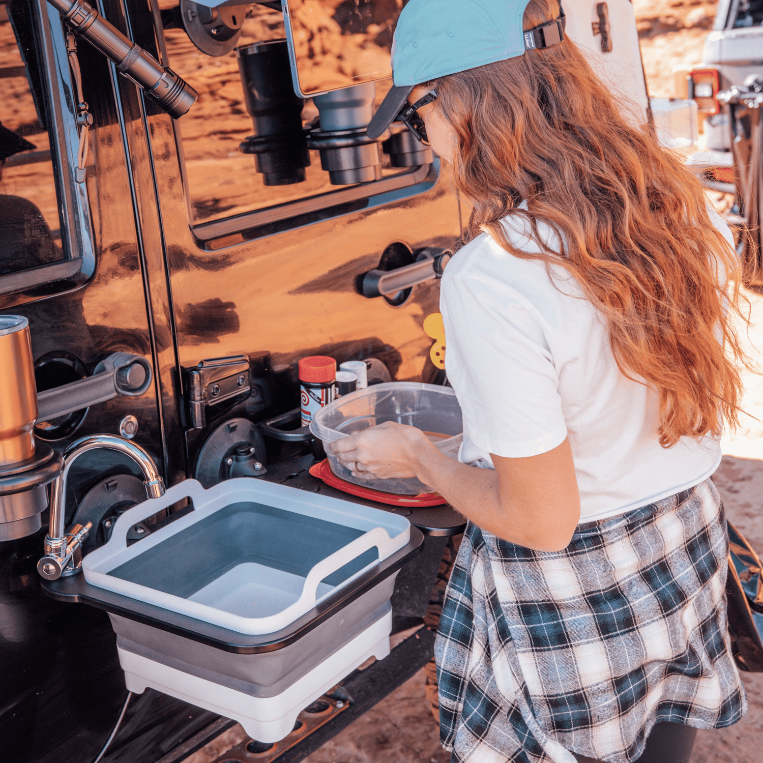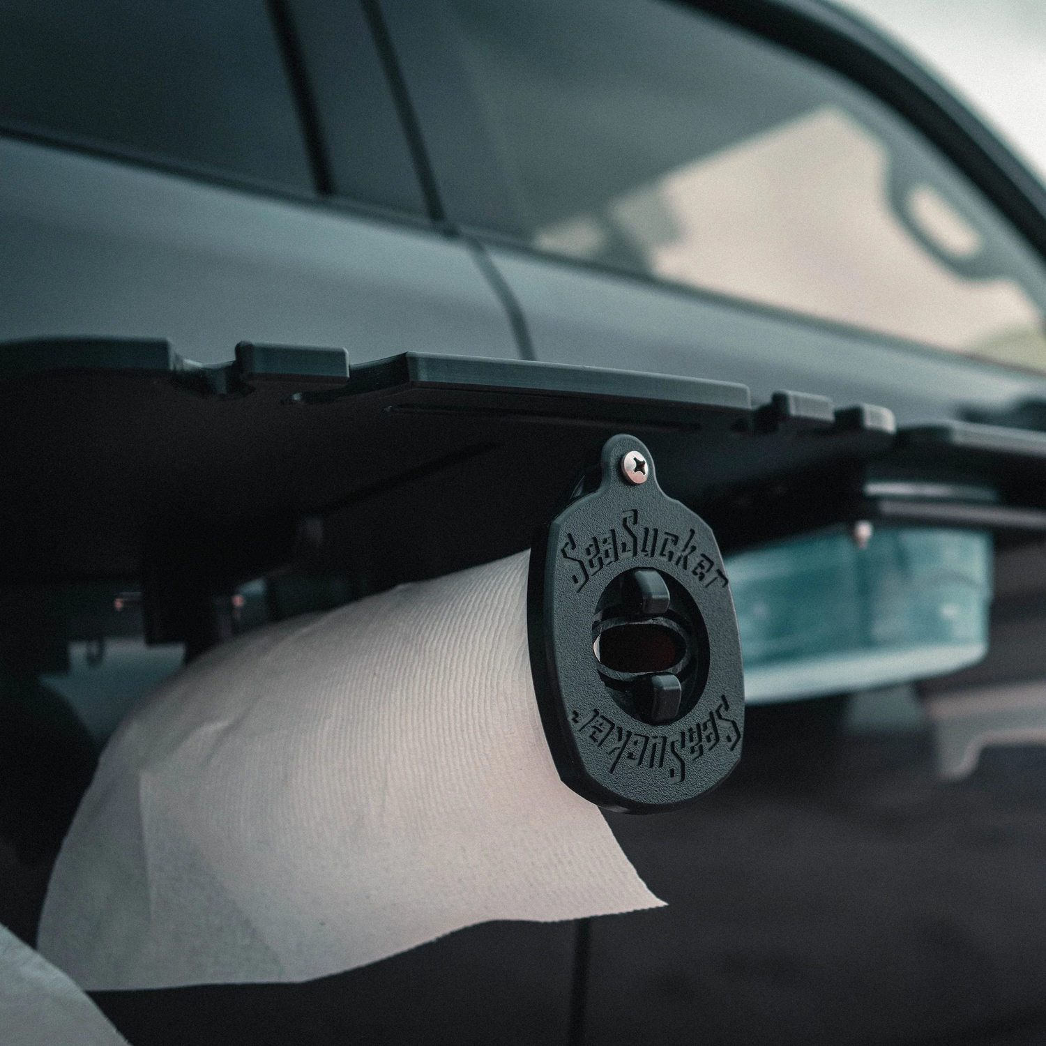 Finally, a table-top solution that mounts to the side of your RV, camper van, or truck. Let the SeaSucker Kitchen Station help you prepare food no matter where you are with the help of a paper towel holder and trash bag attachment. Want to get even more utility out of the unit? You can add a sink attachment and a Rubbermaid attachment to set yourself up with the ultimate food preparation station.