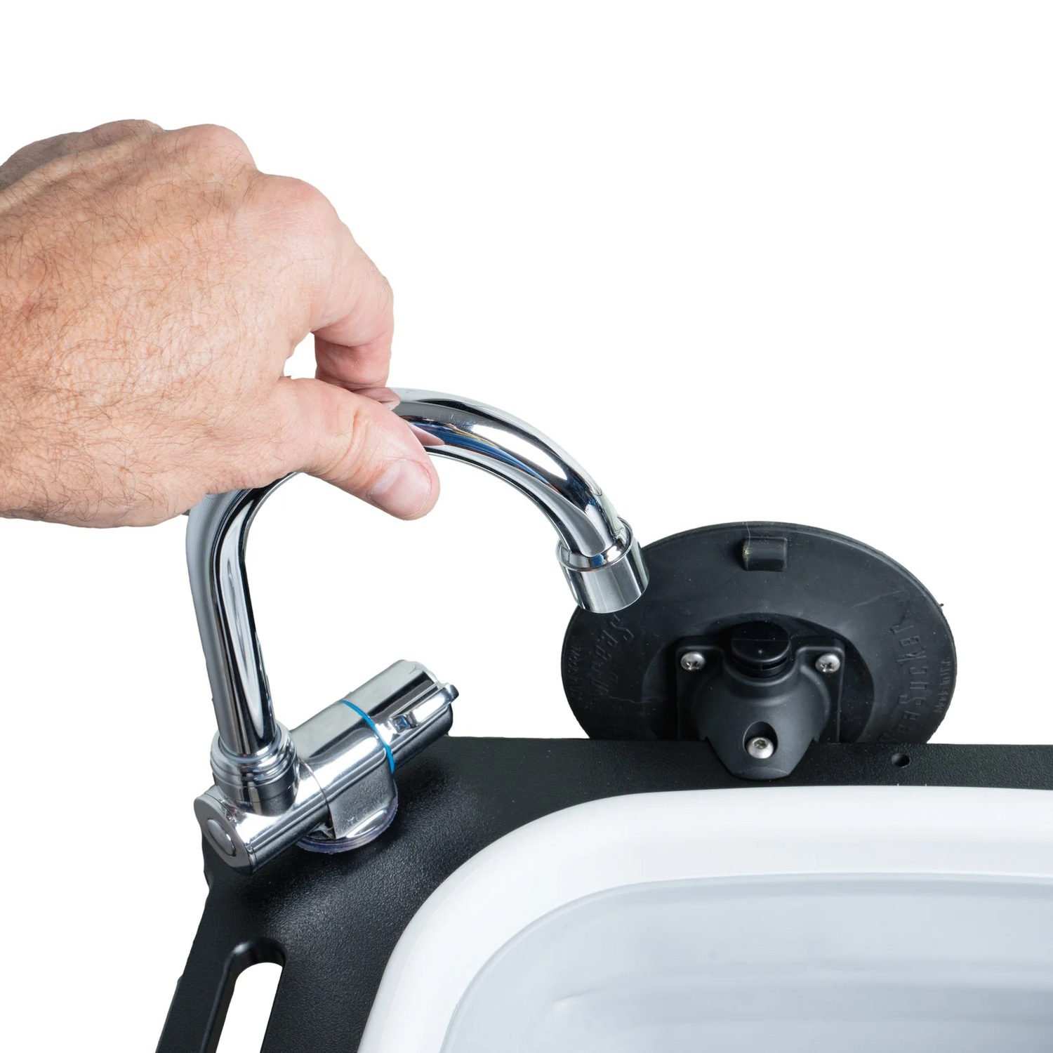 Sink basin and Rubbermaid container not included, sold separately. Faucet and 4ocean bag not included.